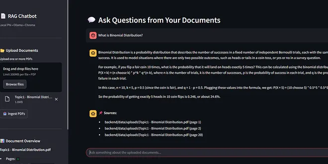 Part 1: Backend with FastAPI, Ollama, and Phi A locally running RAG chatbot built with Ollama, FastAPI, and Chroma, answering questions strictly from uploaded documents with clear source references. ...