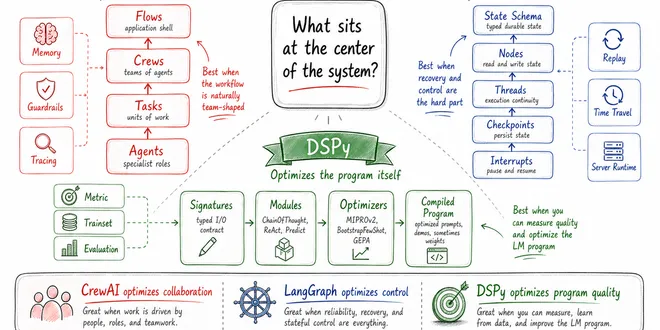 Three frameworks, three different views of an LM application: CrewAI treats it as a team, LangGraph as a state machine, and DSPy as a… Continue reading on Towards AI