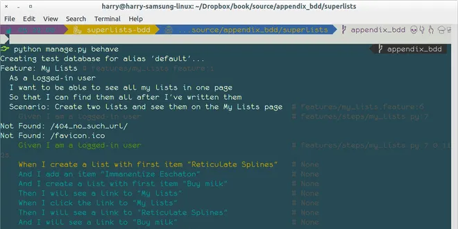 Now I haven’t used BDD "in anger," so I can’t claim any sort of expertise, but I really like what I have seen of it, and I thought that you deserved at least a whirlwind tour. In this appendix, we’ll ...