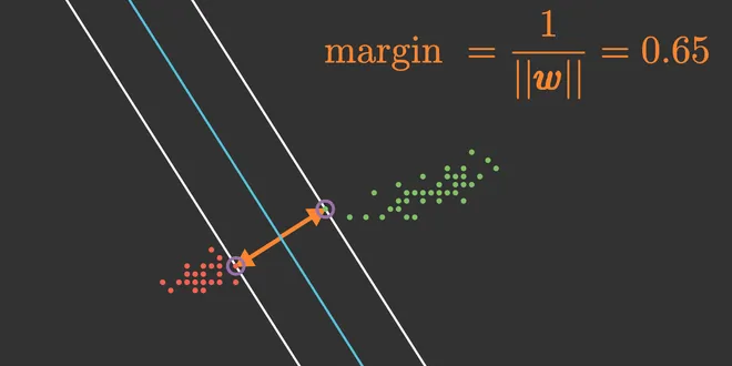 Math of Support vector machines (SVMs) explained with manim animations. Concepts of support vector, margin and separating hyperplane in hard margin SVM.