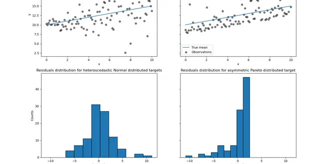 Quantile regression This example illustrates how quantile regression can predict non-trivial conditional quantiles. The left figure shows the case when the error distribution is normal, but has non-co...